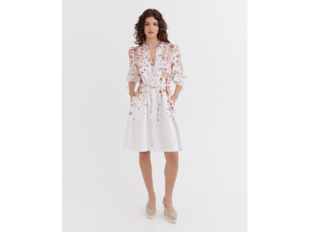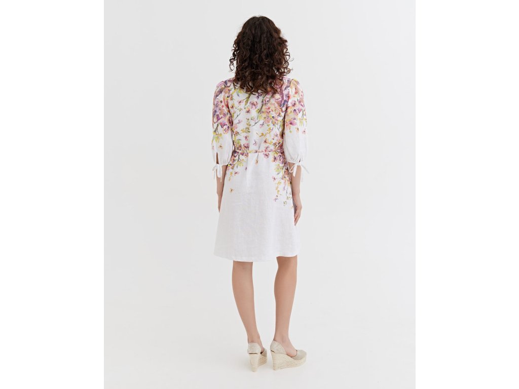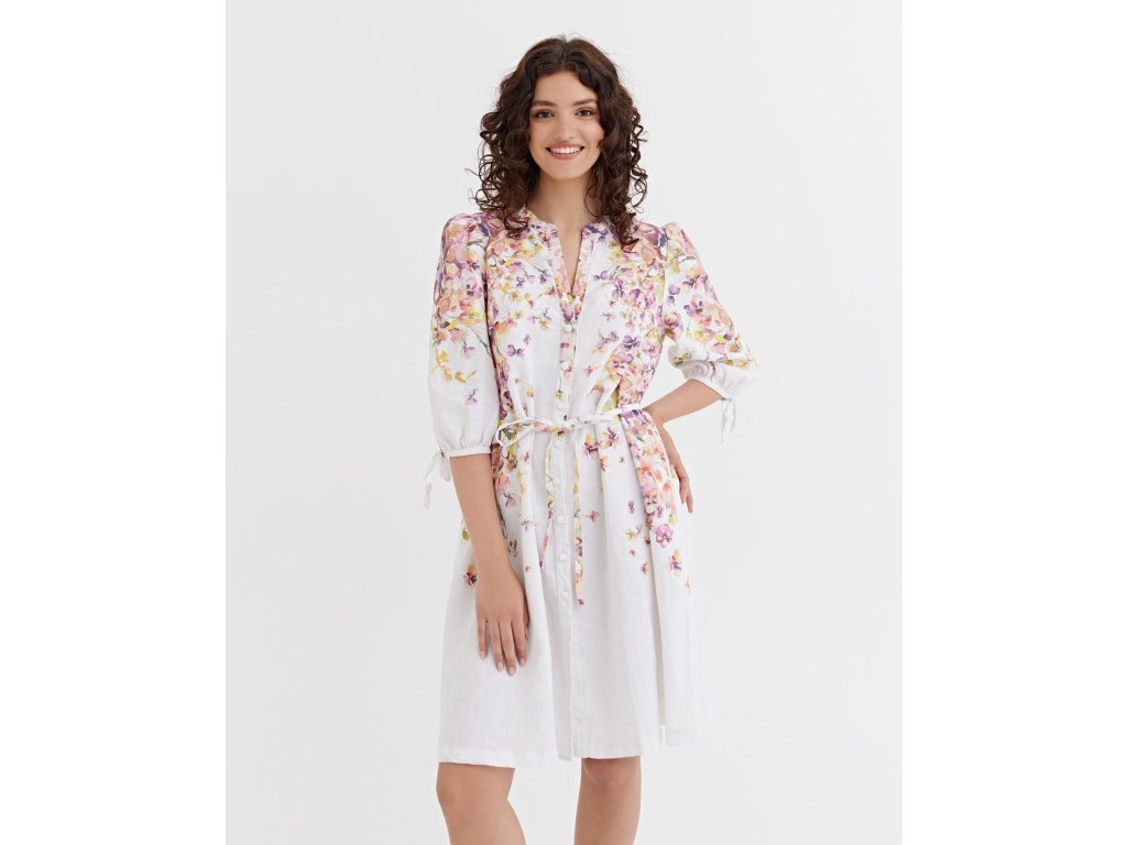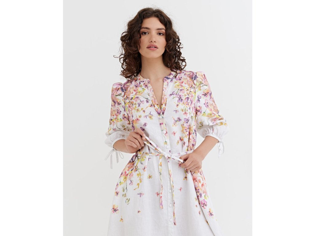 Ľan je potlačený akvarelovými letnými kvetmi, ktoré kombinujú akvarelové sirôtky