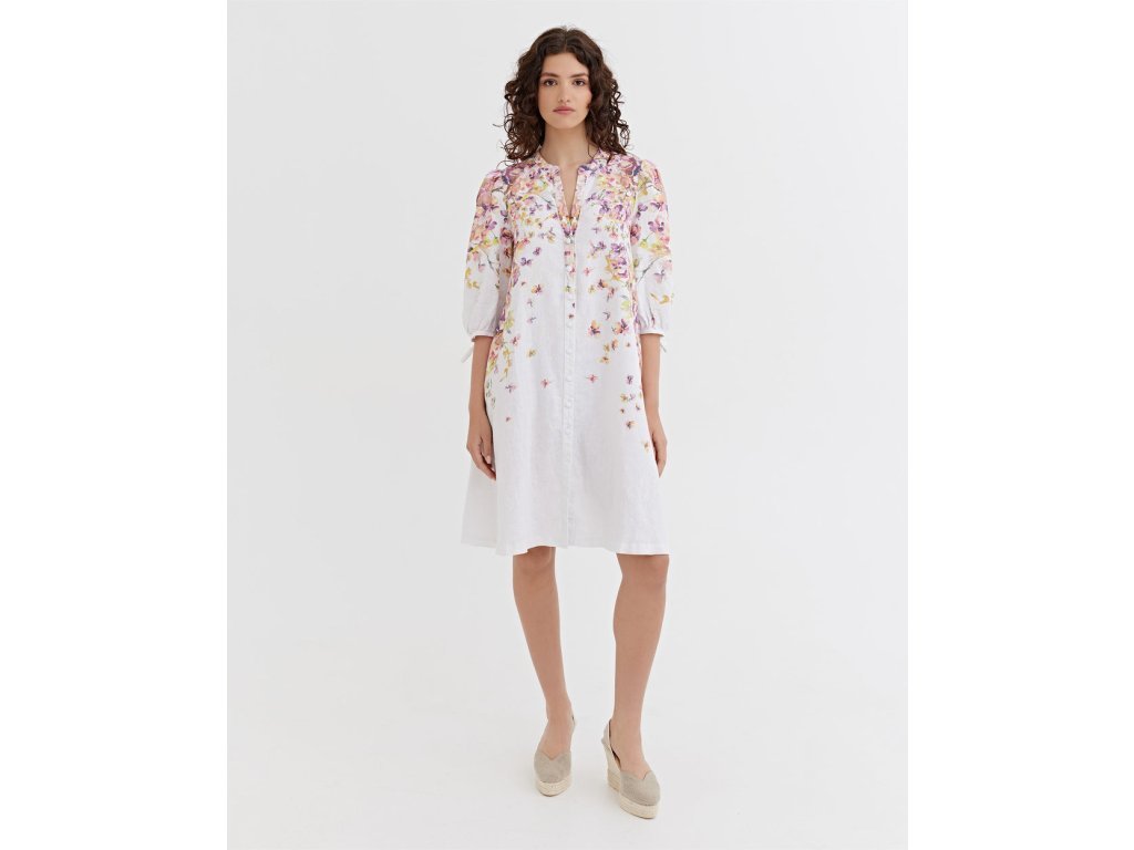 Ľanové šaty VILNIUS s nafúknutými rukávmi v svetlo fialovej farbe