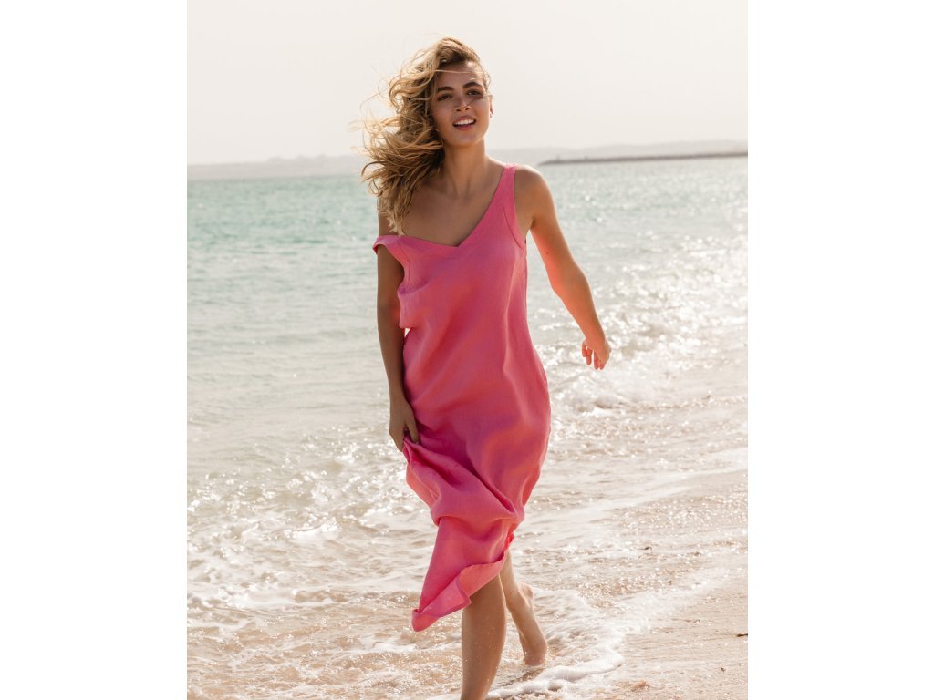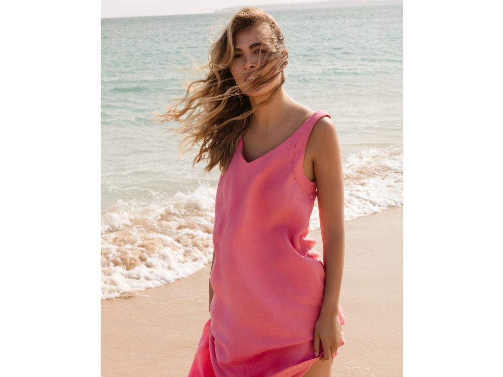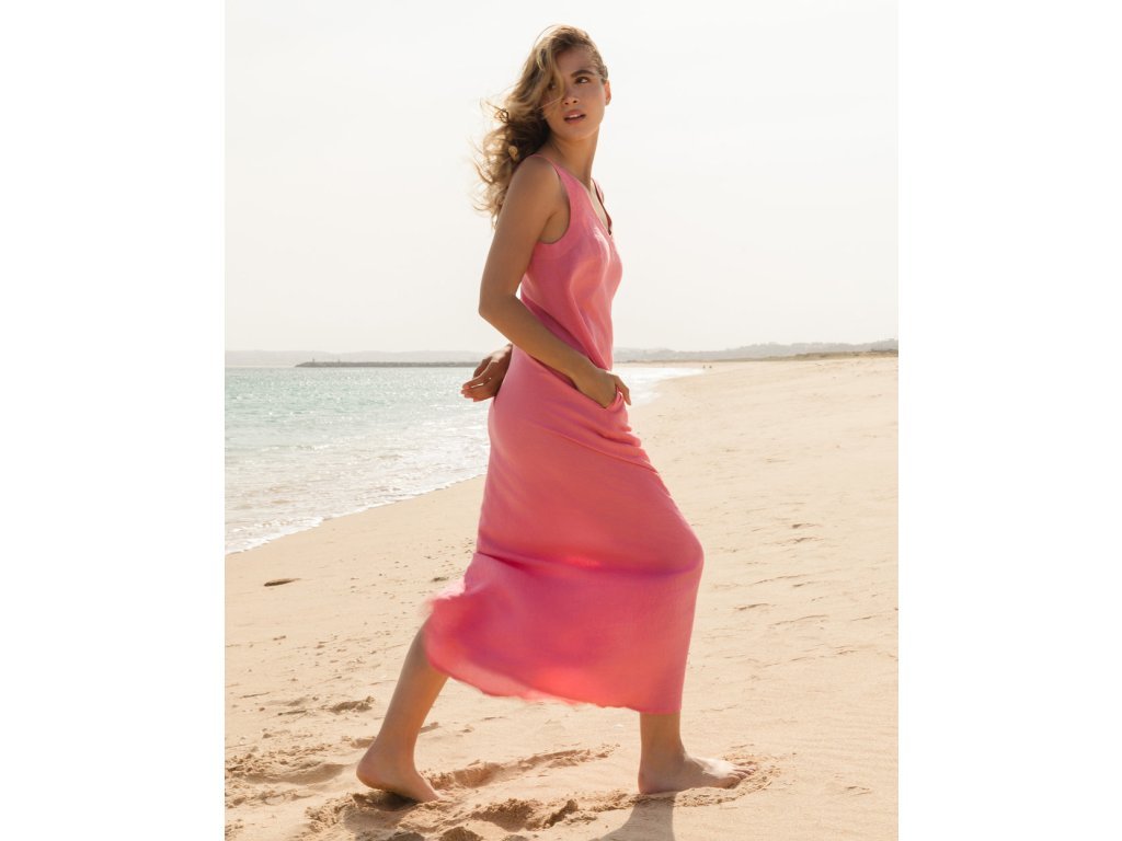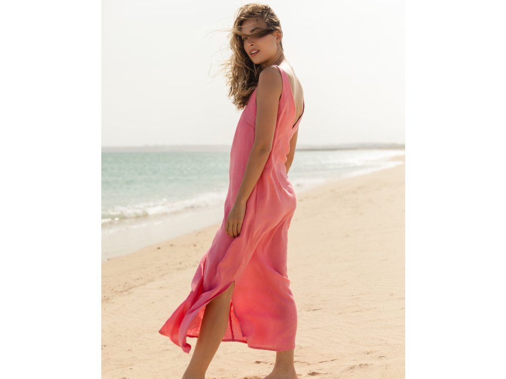 Maxi ľanové šaty bez rukávov BOVA vo flamingo farbe