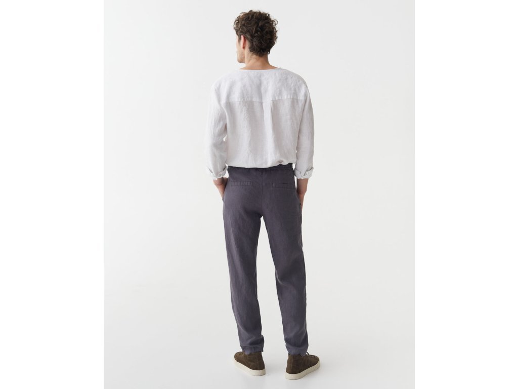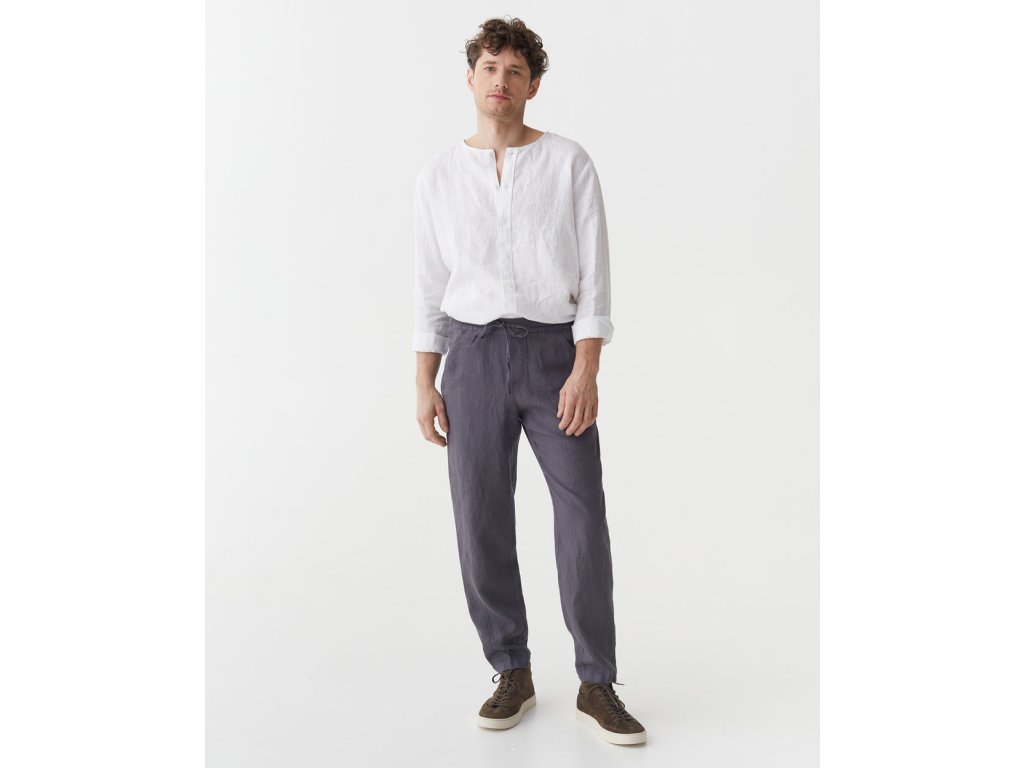 Tieto nohavice uvoľneného strihu, vyrobené z priedušného ľanu,