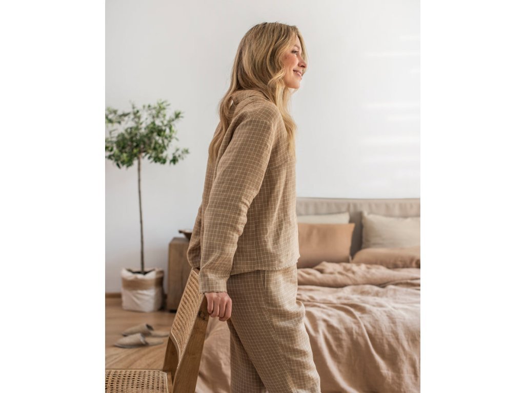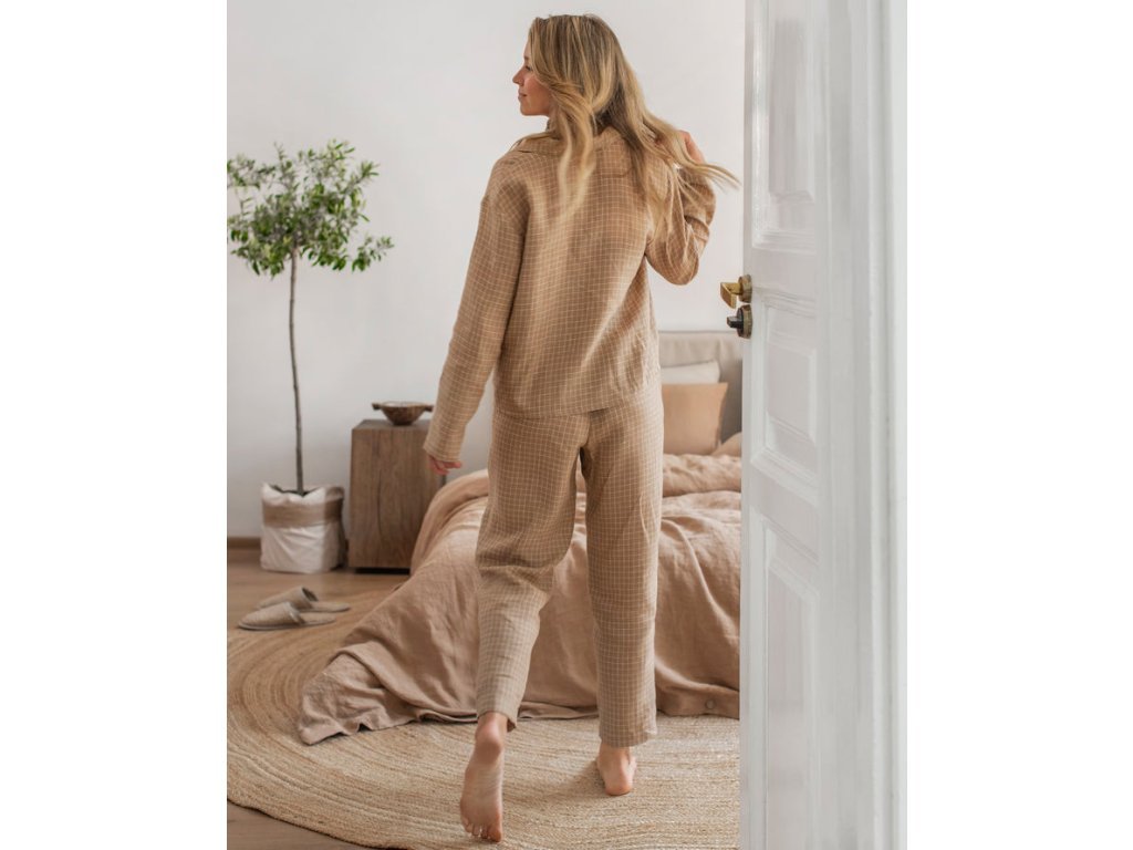 Ľanový pyžamový set LAGUNA hnedá kocka