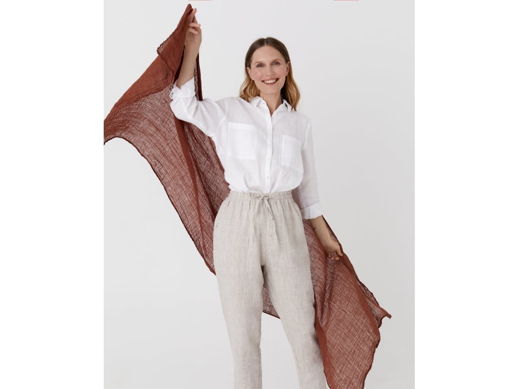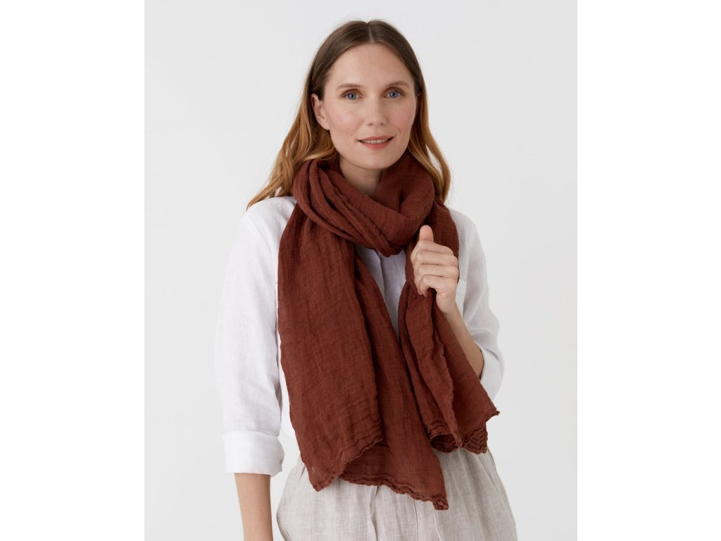 Tento ľahký ľanový šál dodá vášmu outfitu štipku farby a textúry.