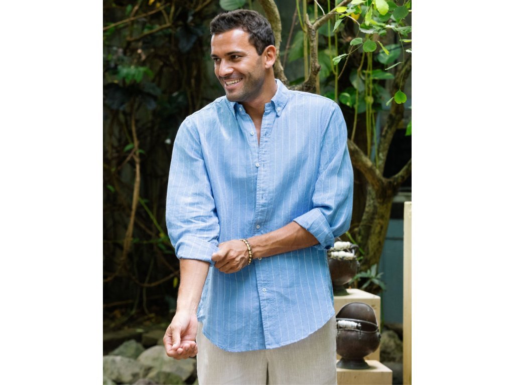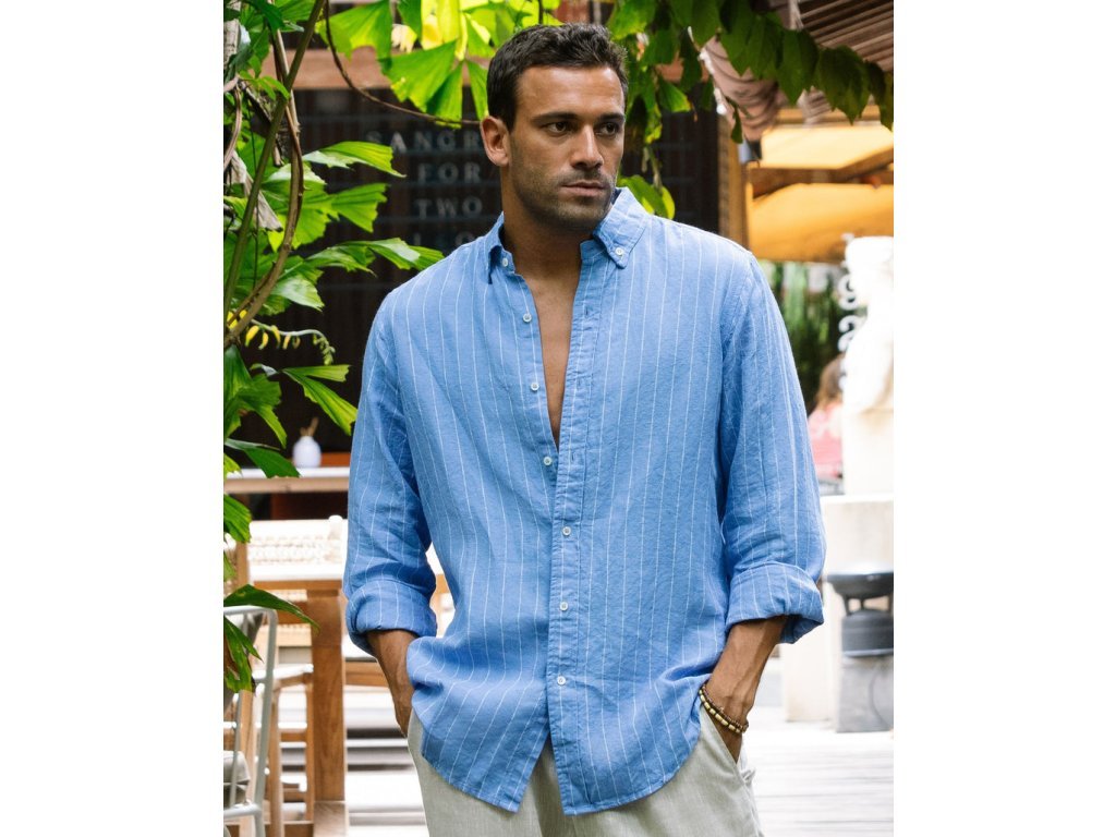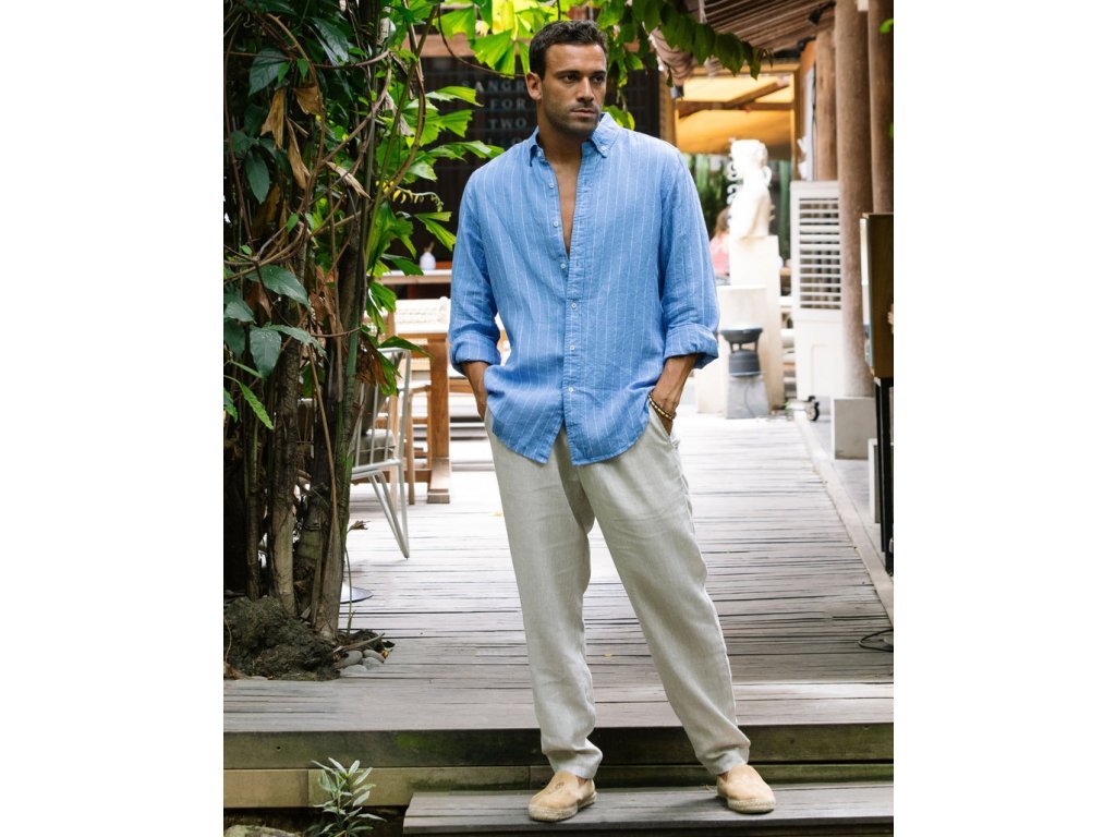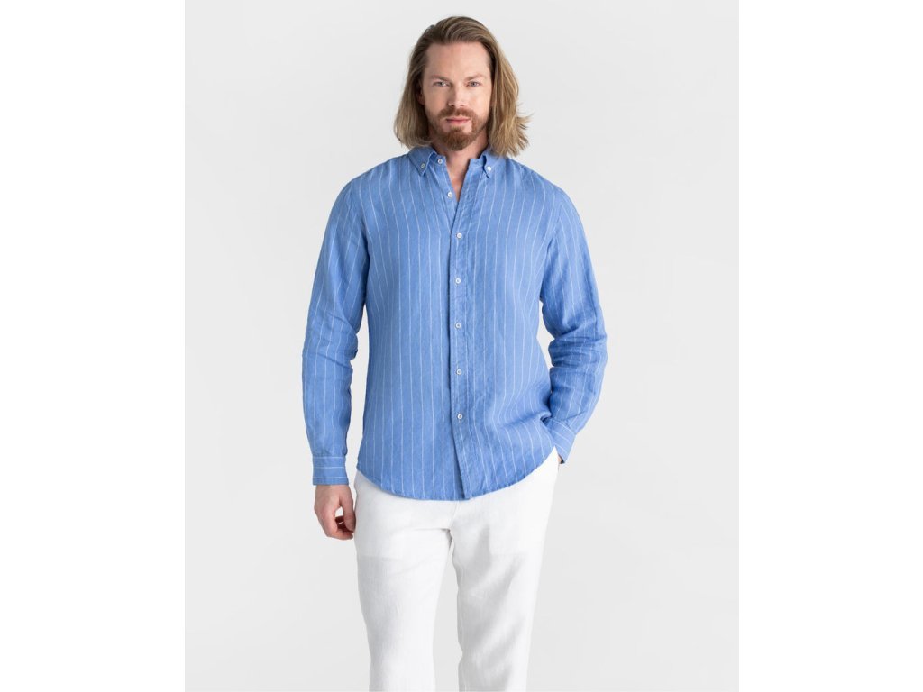 Klasická pánska ľanová košeľa SINTRA v modrých prúžkoch
