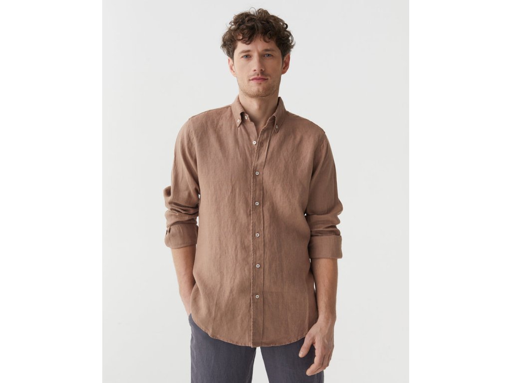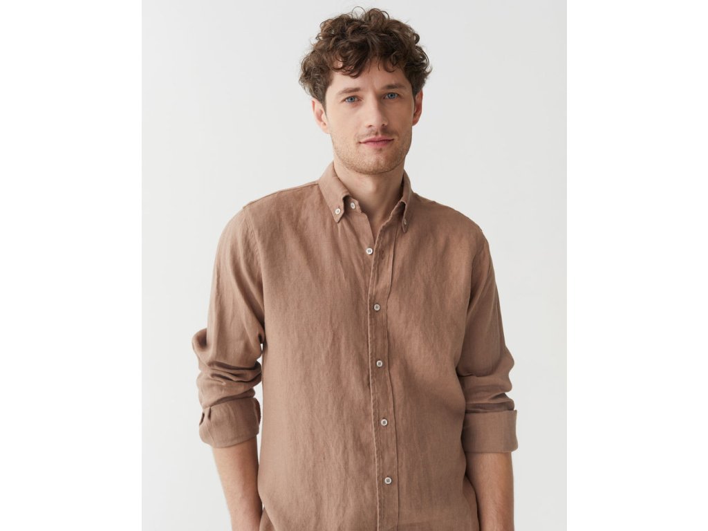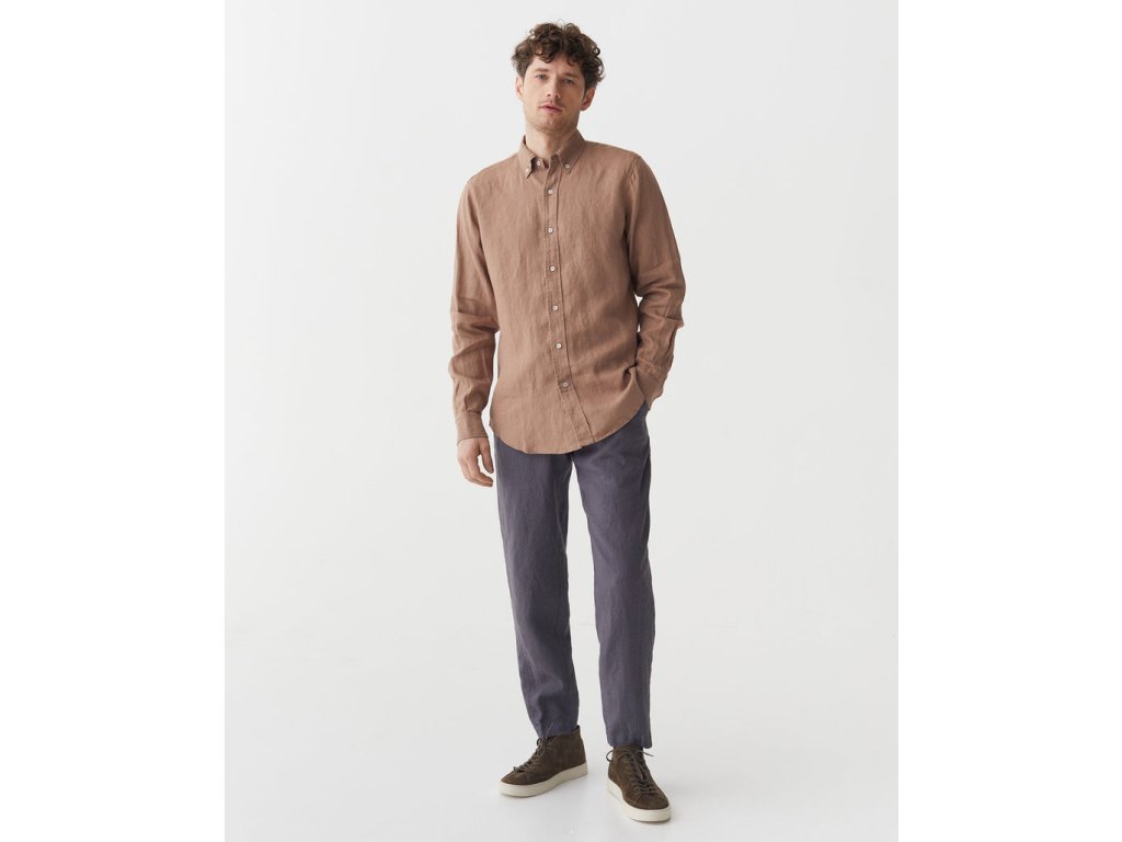 Klasická pánska ľanová košeľa SINTRA v pastelovo hnedej farbe