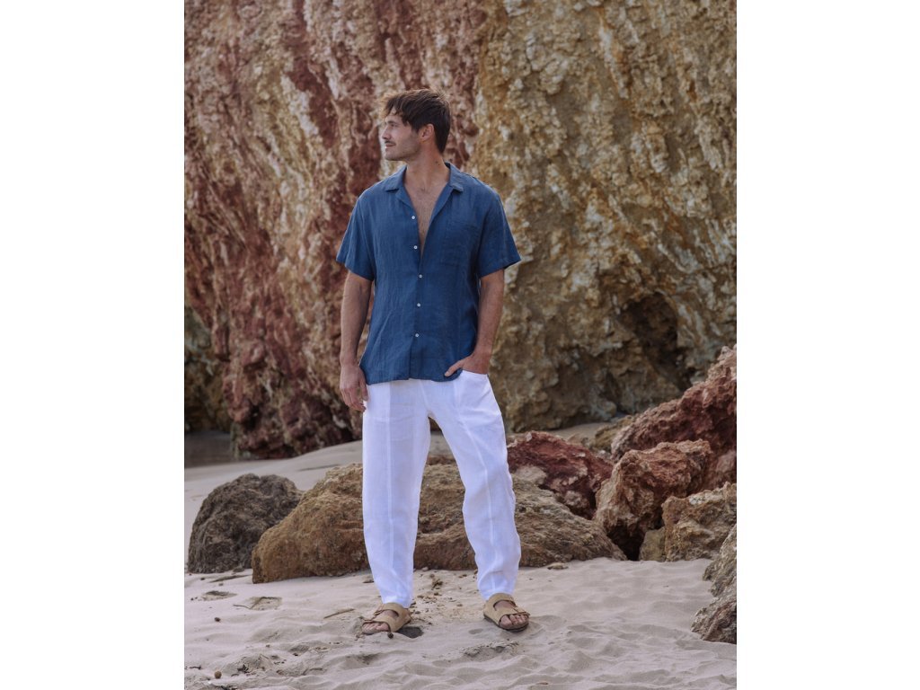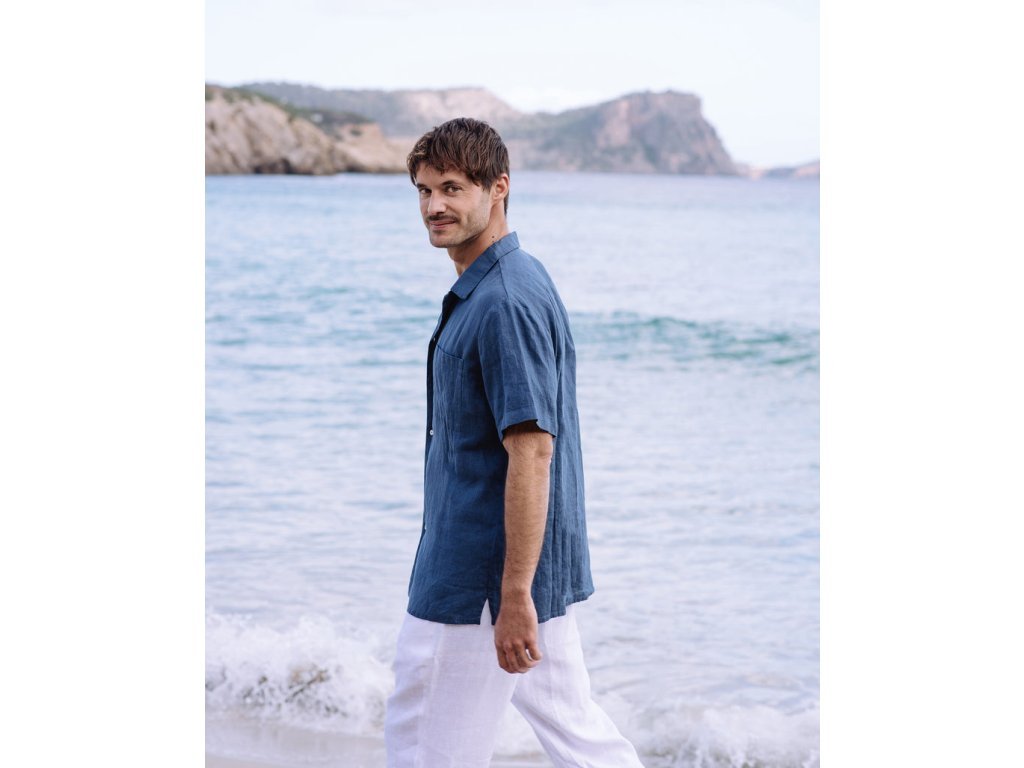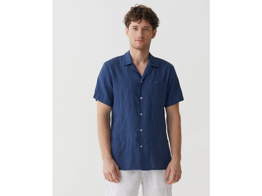 Pánska ľanová košeľa HAWI v tmavo modrej farbe