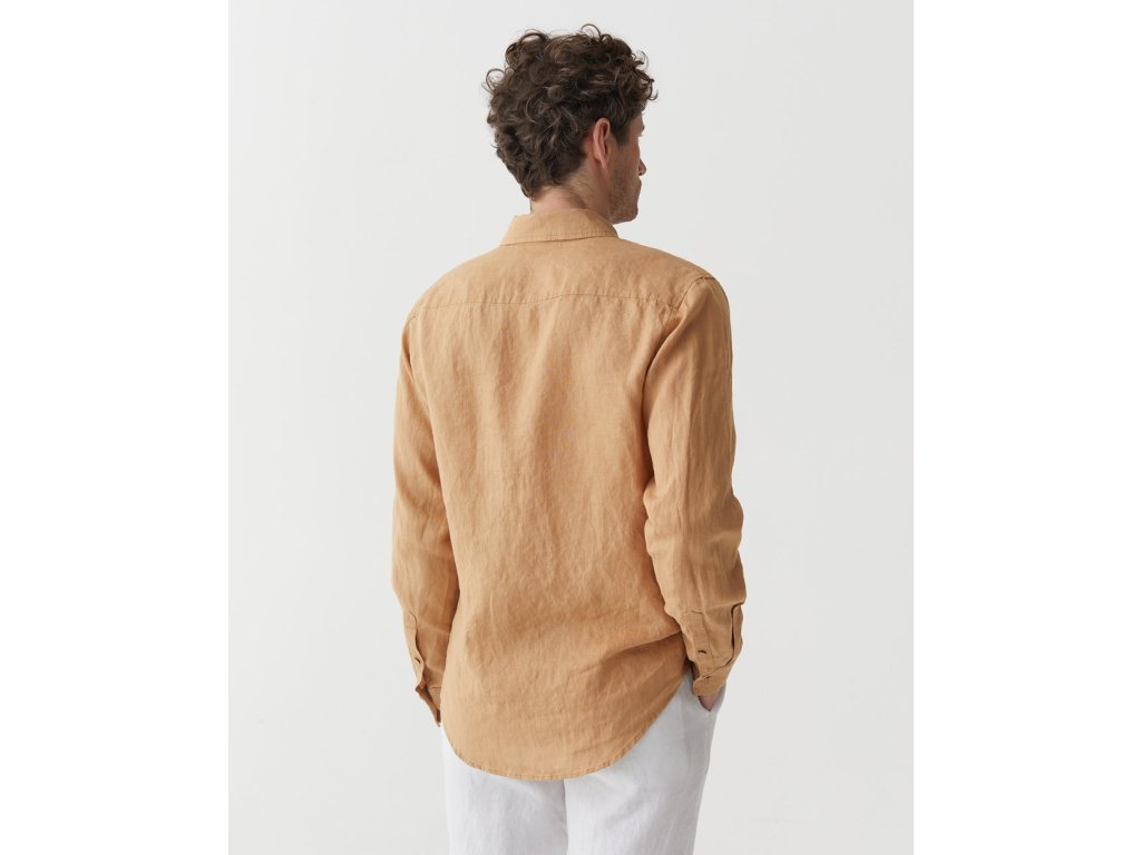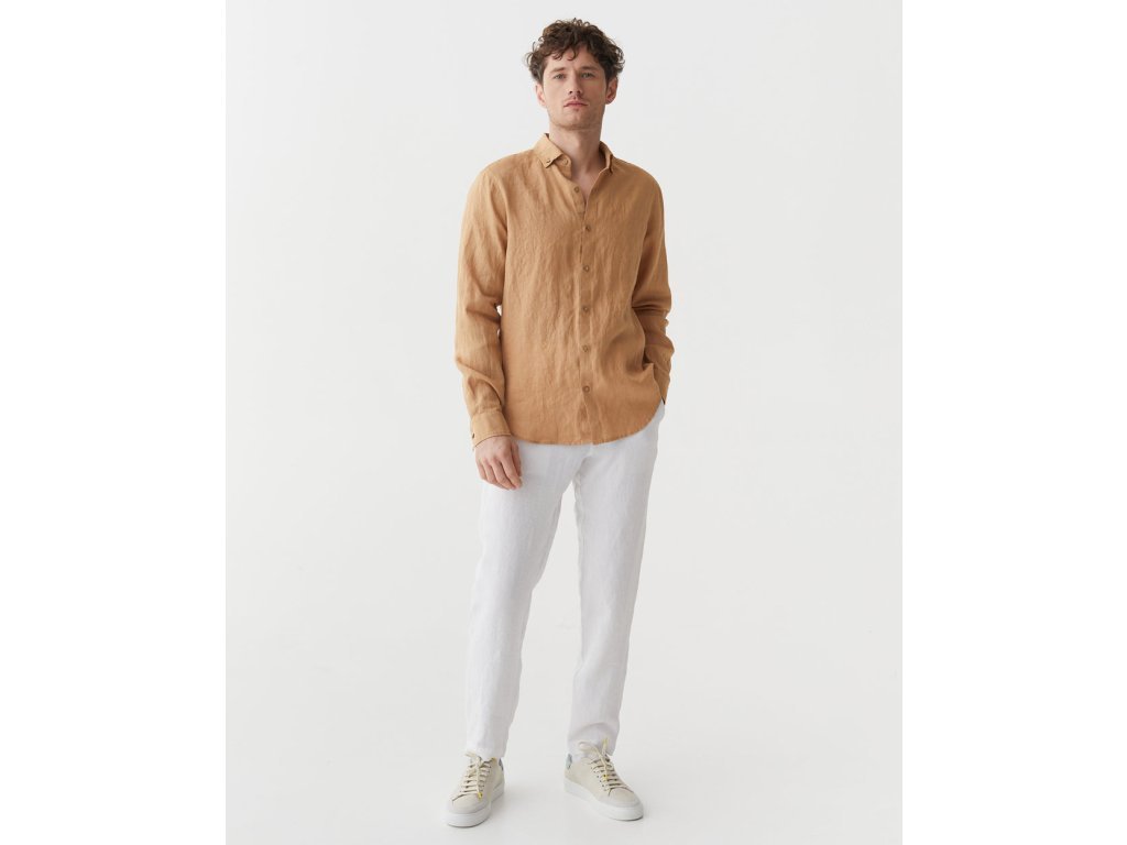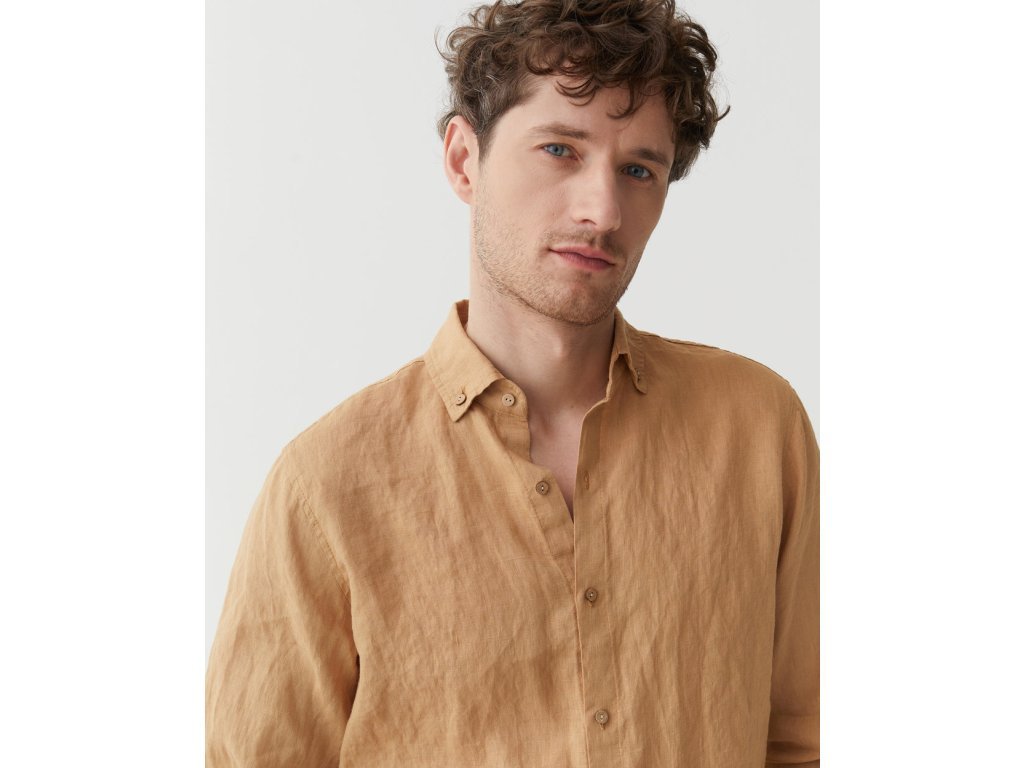 Pánska ľanová košeľa NEVADA v karamelovej farbe je moderná klasika