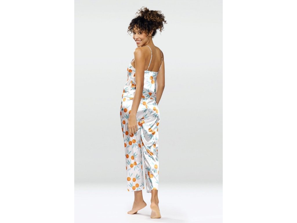 Pyžamo sa skladá z trička s tenkými ramienkami a nohavíc po členky.
