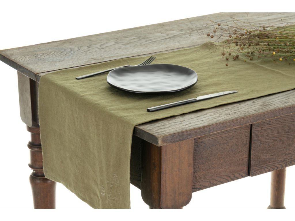Ľanový stolný bežec Martini Olive sú k dispozícii v rustikálnych tlmených tónoch v ľahké, vzdušné väzbe.
