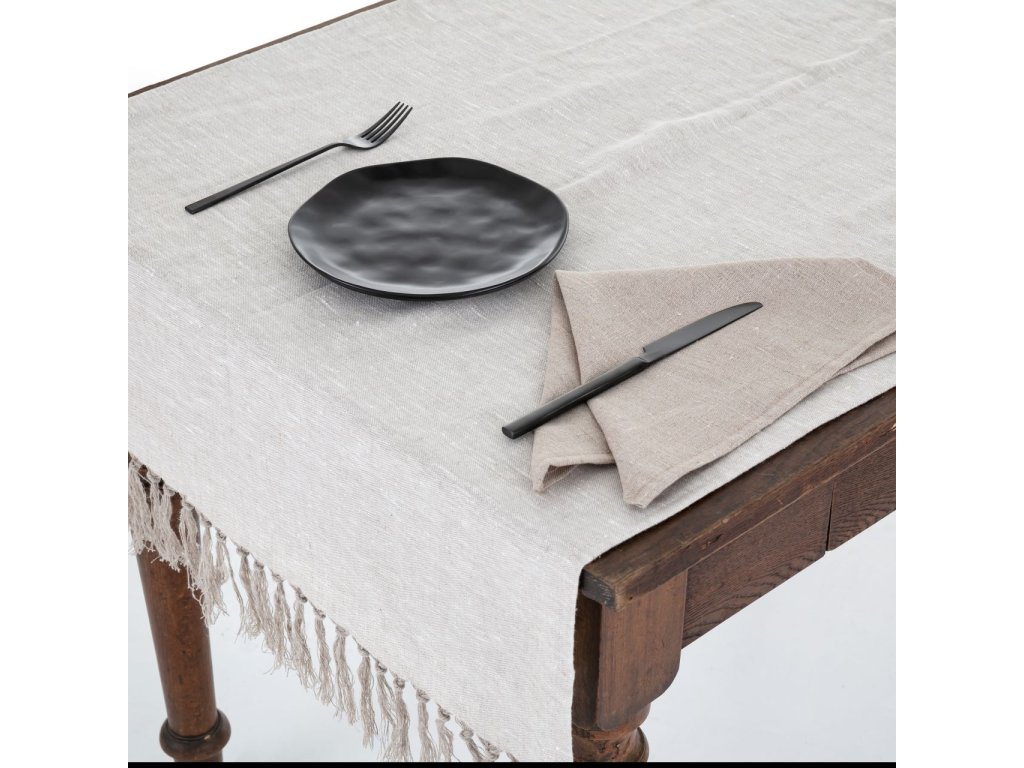 Tom Linen stolný bežec s strapcami Warsa Natural II 65x140 cm